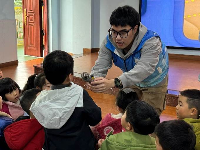 志愿者们借助《海底小纵队》的经典动画片段导入主题,巴克队长、呱唧、虎克船长等熟悉的IP形象瞬间点燃了孩子们的热情。“有那个小朋友知道,巴克队长的潜艇为什么能在水里浮起来呀?”“因为船上有发动机”志愿者们通过问答的方式与小朋友们亲密互动,同时也加深了小朋友们对知识点的印象。