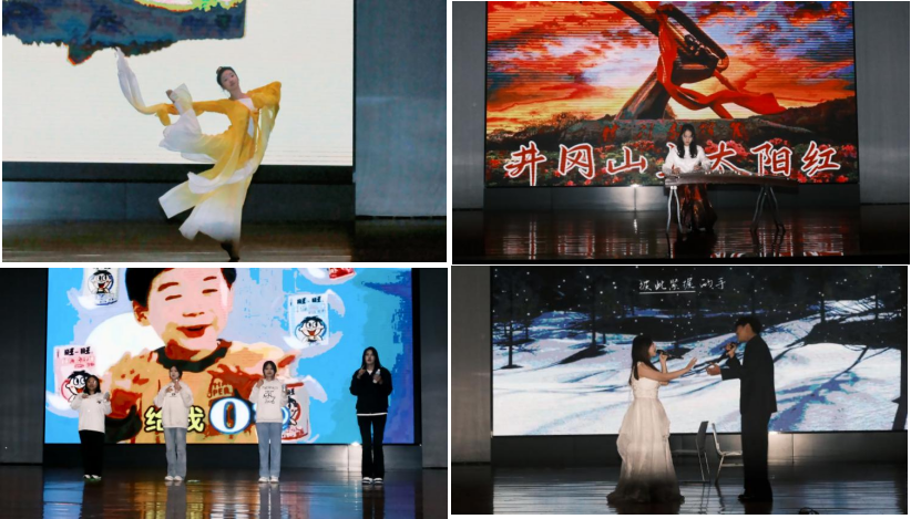 古典舞《玉人舞》翩若惊鸿,衣袂飘飘间尽显中华传统文化之韵味;古筝独奏《井冈山上太阳红》弦音袅袅,将红色革命烽火化作流淌的音符之长河。《童年梦工厂》引领大家穿越至童趣盎然的快乐时光之中。《落叶归根》中蕴含着对家的深切期盼,诉尽了游子对故土那最缱绻的眷恋之情。现代舞《借来的猫》节奏明快,用动感舞步诠释青春风采。乐队表演《找自己》节奏热烈,以充满力量的旋律带领观众在音乐中探寻内心真我;《最后一页》声线缠绵,用动人和声诉说着未完待续的温情故事。