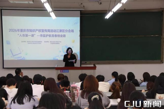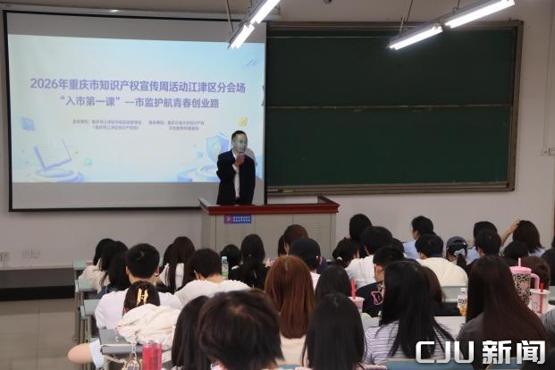 第1眼TV-华龙网讯(郭晓彤)为迎接第26个世界知识产权日,积极响应2026年重庆市知识产权宣传周号召,4月10日下午,由江津区市场监督管理局(江津区知识产权局)主办、重庆交通大学知识产权文化教育传播基地协办的“入市第一课——市监护航青春创业路”专题讲座在重庆交通大学科学城校区举行,为全校创业学子提供创业全流程合规指导。重庆交通大学经管学院知识产权系主任曾野主持讲座。
