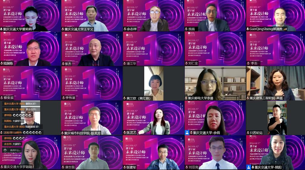 2022年5月21日,由全国高校数字艺术设计大赛组委会(以下简称“组委会”)和重庆交通大学共同主办,重庆交通大学教务处、建筑与城市规划学院承办的2022第十届未来设计师全国高校数字艺术设计大赛暨全国艺术设计教师教学创新大赛重庆赛区线上学术研讨会成功举行。