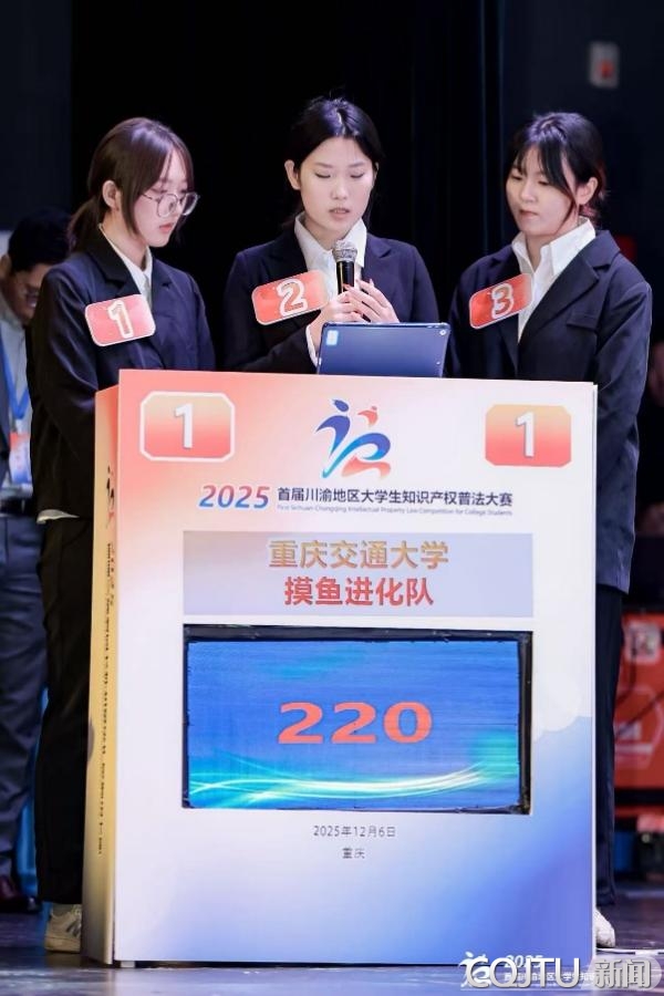 2025年12月6日,首届川渝地区大学生知识产权普法大赛在重庆大学圆满落幕。本次大赛由重庆市知识产权局、重庆市教育委员会、重庆市司法局、四川省市场监督管理局(省知识产权局)、四川省教育厅、四川省司法厅等六部门共同主办。我校代表队凭借扎实的专业功底与默契的团队协作,从川渝地区118所高校中脱颖而出,成功晋级决赛,并最终以主观题第一、总排名第六的成绩荣获大赛三等奖和最佳风采奖。