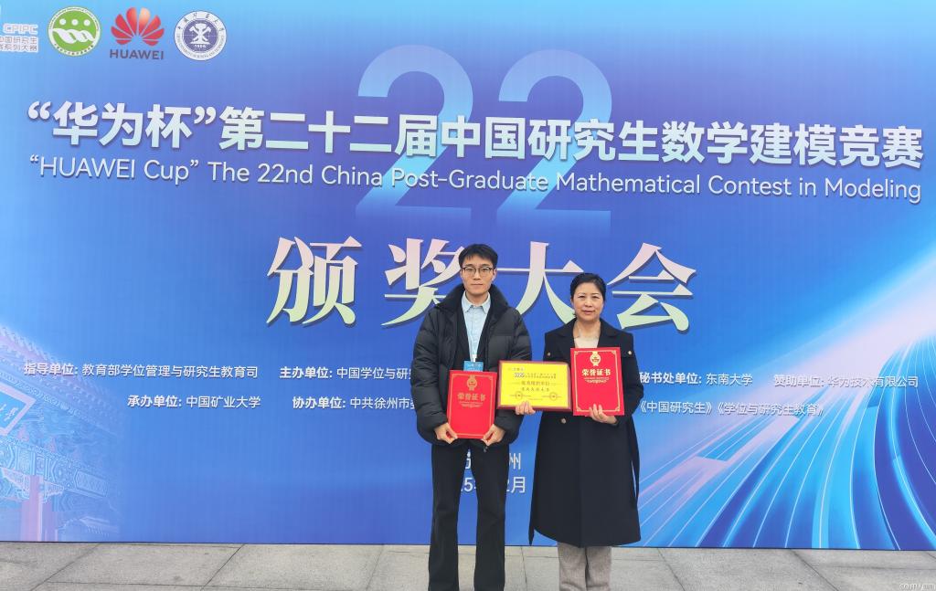 2025年12月5日至7日,“华为杯”第二十二届中国研究生数学建模竞赛颁奖大会系列活动在中国矿业大学南湖校区举行,我校中国研究生数学建模竞赛“先进个人”徐芳老师和一等奖获得者郝思铭同学受邀参加。