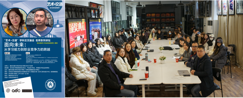 2026年1月8日上午,重庆交通大学艺术设计学院“艺术+交通”学科交叉融合名师系列讲坛在南岸校区第一教学楼10312教室举行。本次前沿微课以“面向未来:从学习能力到职业竞争力的跨越”为主题,特邀当代视觉语言工作室骨干教师四川美术学院设计学院视觉传达设计系副教授、硕士生导师陈滢竹,美国Logo Creative公司视觉设计主管、四川美术学院外聘教授刘艺两位嘉宾,为学院师生带来学界与业界的前沿视角。艺术设计学院许木子老师主持,学院相关专业教师及全体大三同学参与。