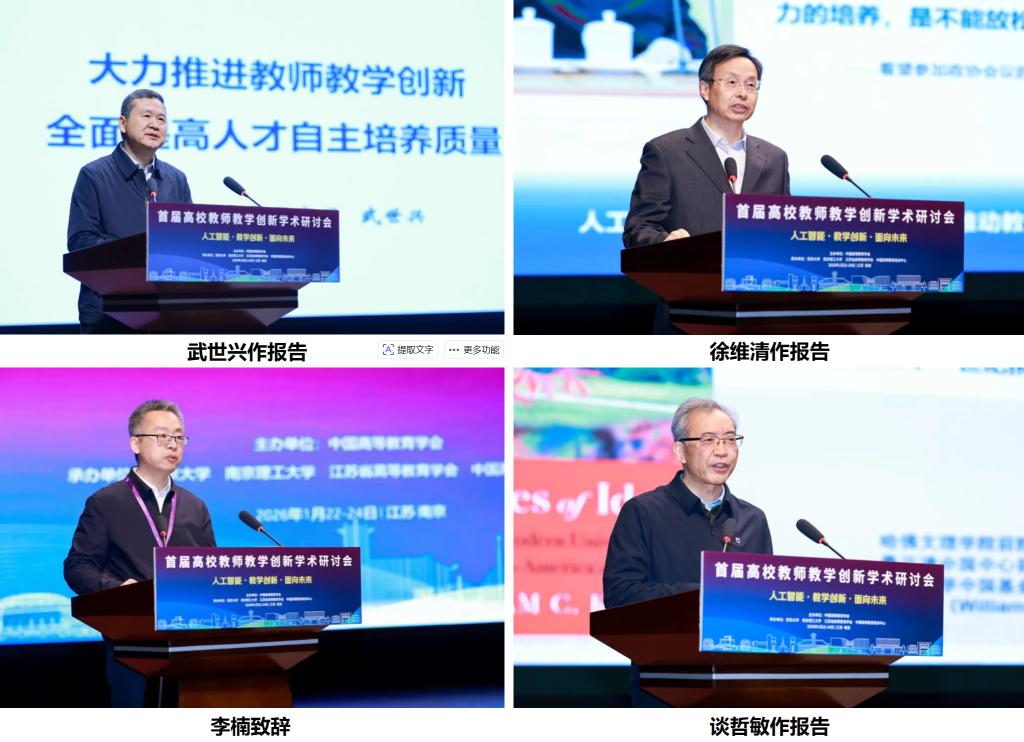 为应对人工智能时代对高等教育带来的深刻变革,2026年1月22日至24日,中国高等教育学会联合南京大学、南京理工大学、江苏省高等教育学会,以及中国高等教育培训中心共同举办的“首届高校教师教学创新学术研讨会”在南京举行,聚焦“人工智能·教学创新·面向未来”。教育部高等教育司副司长武世兴,教育部教育质量评估中心主任徐维清,中国高等教育学会副会长兼秘书长李楠,中国科学院院士、南京大学校长谈哲敏,江苏省教育厅二级巡视员张鲤鲤,武汉理工大学原校长杨宗凯,浙江大学副校长夏群科,天津大学副校长李斌,复旦大学原副校长徐雷,南京理工大学副校长李强等领导专家出席,共商人工智能时代育人新范式。会议由江苏省高等教育学会会长丁晓昌、南京大学副校长陆现彩主持。重庆交通大学建筑与城市规划学院院长董莉莉教授、院长助理姚阳教授作为教学创新骨干代表全程参会,与全国同行共探人工智能赋能高等教育发展新路径。