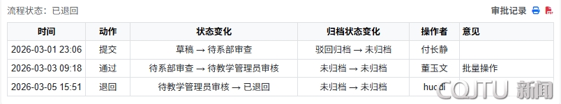课程归档审批全过程线上留痕,形成完整可追溯的审批记录