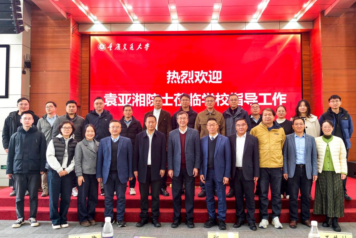 袁亚湘研究员认真听取汇报,对重庆交通大学立足交通特色、推动数学与应用学科深度融合的发展路径给予高度认可。他指出,交通领域的智能化转型是国家交通强国战略的重要方向,而数学正是支撑人工智能技术在交通场景落地的核心基础,重庆交大在这一交叉领域的探索具有重要现实意义。针对数统学院的发展,他建议进一步聚焦交通场景下的数学问题,如动态交通流的随机建模、桥梁损伤识别的算法优化等,形成差异化研究优势,并表示愿意为学院师生提供学术指导,期待共同推动数学与人工智能领域的创新突破。