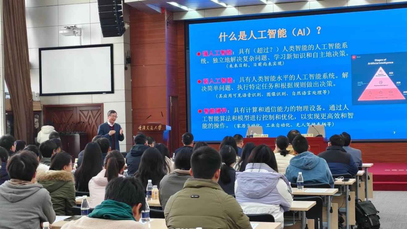 会见结束后,“人工智能的数学基础” 专题学术报告正式拉开帷幕。副校长郑丹在主持致辞中强调,数学是人工智能发展的 “源头活水”,而交通领域是人工智能技术创新应用的重要 “试验场”,袁亚湘研究员作为数学与AI交叉领域的顶尖专家,其研究成果为破解复杂工程问题提供了关键理论支撑。他希望在场师生能珍惜此次交流机会,深入学习前沿学术思想,将数学理论与交通实践紧密结合,为学校学科发展注入新动能。