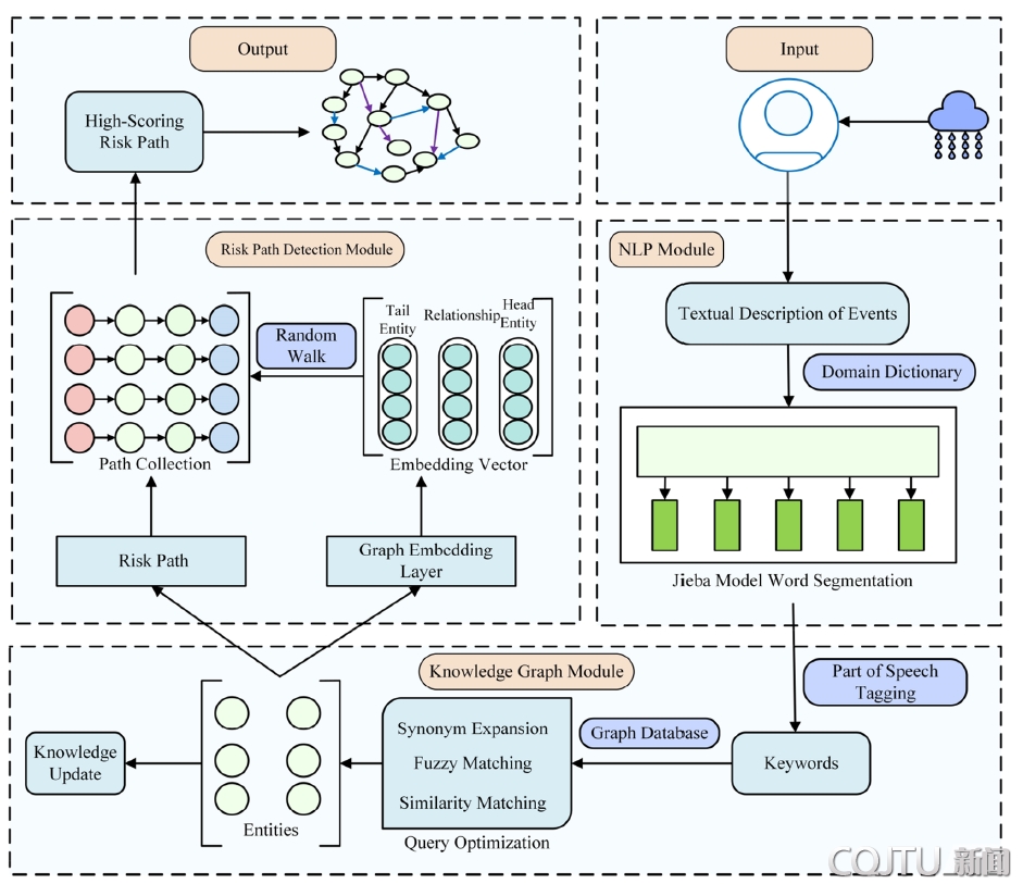随着全球气候变化加剧,极端暴雨事件频发,城市轨道交通系统因地下空间结构复杂、系统耦合度高,面临严峻的内涝及次生灾害风险。如何整合多源异构灾害信息,揭示灾害链动态演化规律并支撑科学决策,已成为城市安全治理领域的重要课题。针对这一问题,王昊副教授团队构建了融合知识图谱(Knowledge Graph)与自然语言处理(NLP)的城市轨道交通暴雨灾害风险演化分析框架。研究围绕“风险因素—灾害影响—灾害响应”三层结构构建知识模型,通过历史案例文本挖掘与语义关系抽取,形成灾害知识图谱,并结合图神经网络与随机游走算法,实现灾害演化路径推理与关键节点识别。