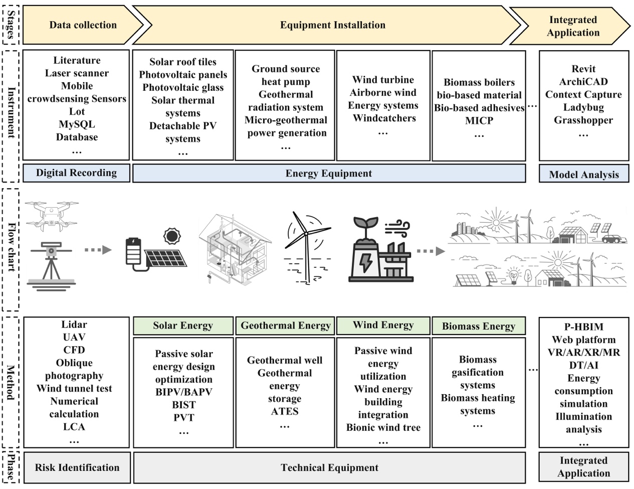 本研究基于2004-2025年在WOS数据库收录的研究成果,综合分析了建筑遗产中可再生能源技术集成应用的主题变迁及热点问题,通过解析建筑遗产保护利用的特殊性,厘清并提出了可再生能源在建筑遗产中的技术集成应用准则和策略,进而梳理了可再生能源在建筑遗产领域的技术集成应用研究脉络,深度探讨了太阳能、地热能、风能及多元综合可再生能源技术在促进建筑遗产提能降碳和绿色舒适方面的潜力以及其对于建筑遗产的适用性,从而研判可再生能源在建筑遗产中的技术拓新、复合材料和数智管理这三个技术集成应用方面的前沿趋势与未来挑战。研究结果表明:以原真性为“第一性”原则,以不破坏遗产本体及其建成环境为前提,采用“安装-拆解”可逆性技术设施,遵循形式“协调性”原则、环境“最小干预”原则、材料“可识别性”原则和技术“可逆性”原则,从而实现可再生能源的高效技术集成应用,最终构建绿色、零碳、智慧并存的建筑遗产空间,寻求协同建筑遗产本体保护传承与减碳节能改造利用的综合解决方案,是未来建筑遗产中可再生能源可持续技术集成应用的战略与挑战,亦是未来学界研究的重要问题。研究旨在为实现建筑遗产本体保护传承与减碳节能利用的协同提供关键技术支撑,为全球“双碳”目标驱动下国际建筑遗产节能降碳技术领域研究提供指南,助推建筑遗产的可持续发展。