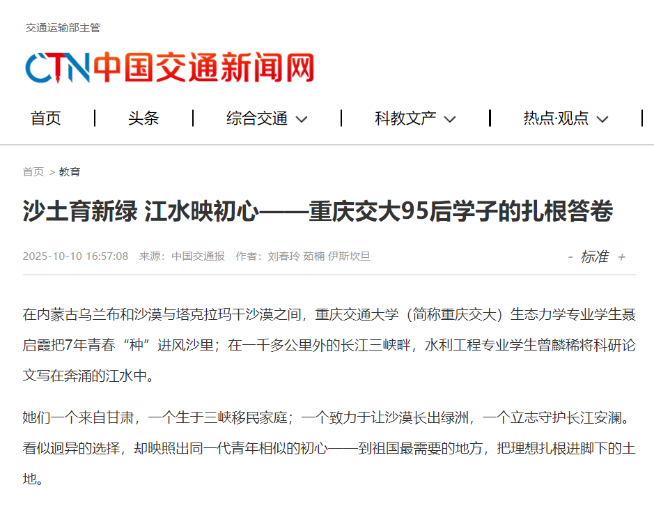 从治沙到治水,两位95后女生的选择,深深扎根于重庆交大这片育人沃土。