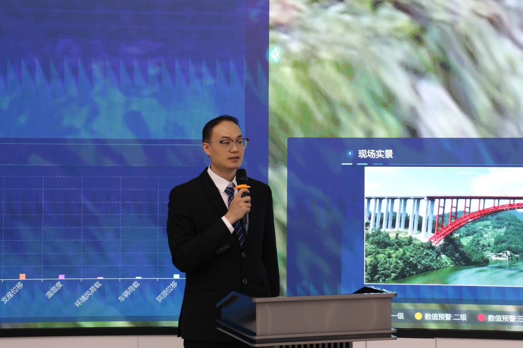 与会记者重点采访了我校享有盛誉的“智慧桥梁团队”。重庆市巴渝学者青年学者夏润川老师以“扎根西部,科技报国”为主题,向媒体记者作了翔实的专题报告。报告详细阐述了由周建庭教授领衔的这支高水平科研团队,三十余年来始终面向国家交通基础设施建设主战场,聚焦山区桥梁及隧道的智能建造、安全运维与性能提升等关键核心技术难题,持续开展科技攻关的奋斗历程。团队研究成果已成功应用于包括港珠澳大桥、川藏铁路在内的多项国家重大工程,累计服务全国2000余座桥梁,荣获国家科技进步二等奖3项,为保障国家交通主动脉安全、推动行业科技进步作出了重要贡献。