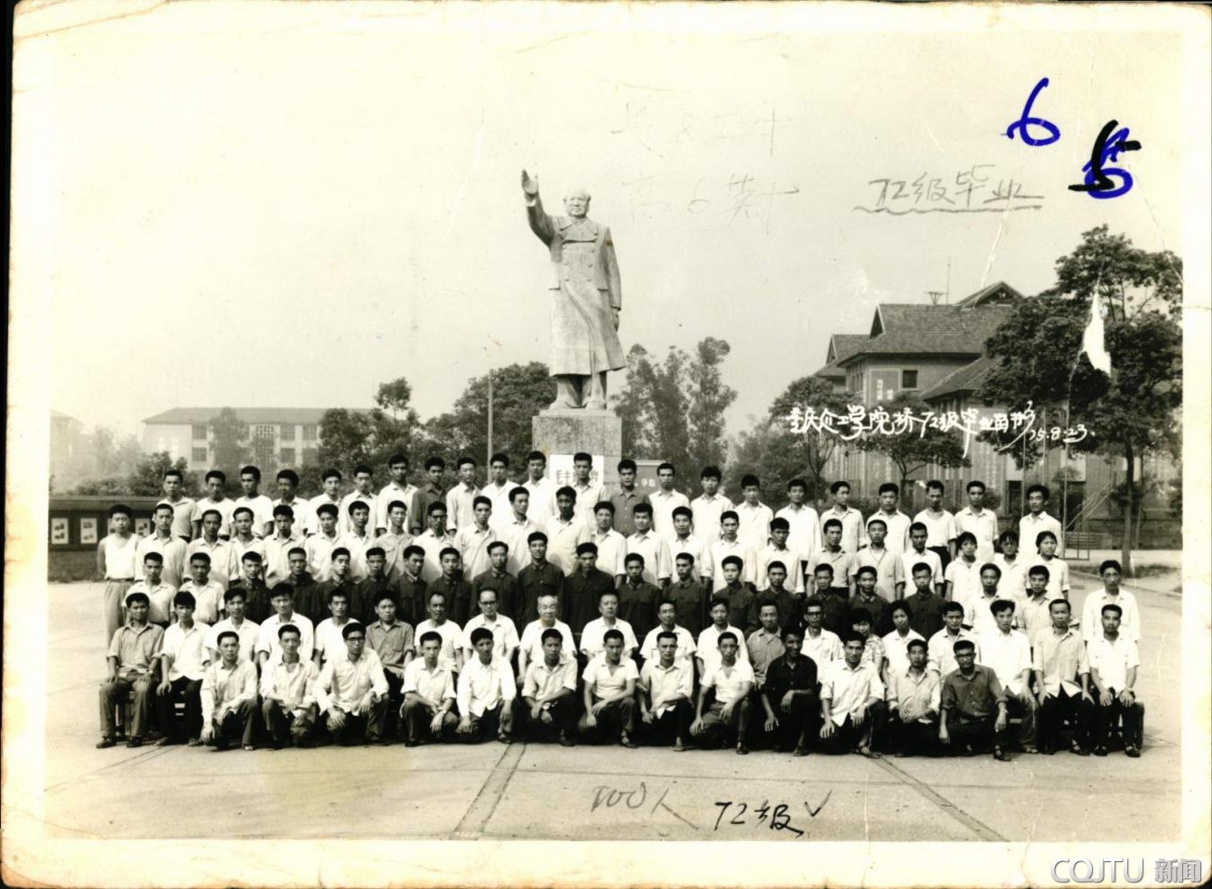 交大曾于1972年至1979年并入重庆建工学院,这张照片就是1972级桥专业学生合影。1974年已经成家立业的彭觉富回到故乡重庆,成为母校的一名老师,以全新的身份见证了交大又一历史时期的发展壮大。他不仅担任工程实训老师,也是政治辅导员。多年工作经验的积累充实了他的教学能力,让他深受学生的爱戴。道桥系75级桥1班血木尔铁等好几位藏族同学毕业后分配回西藏,成为西藏交通建设的中坚力量,他们多次给彭老师寄来高原的礼物,一起感念在沙坪坝学习生活的交大记忆。