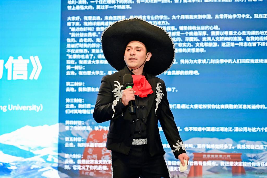 墨西哥留学生Alcibar Ortiz Juan Fernando(云逸)则以《给远方朋友的信》为载体,用细腻的笔触向世界诉说昌都的山水人文,线上收获良好口碑,决赛宣讲中从容的风采给评委留下深刻印象,取得综合成绩第四名的好成绩。