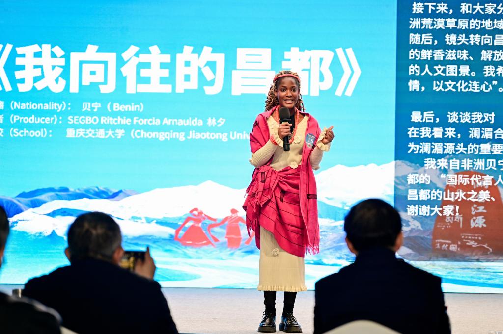 贝宁籍学生SEGBO Ritchie Forcia Arnaulda(林夕)的参赛作品《我向往的昌都》以真挚的情感、生动的表达勾勒出昌都的独特风情,在线上投票中收获2370票的高支持率,决赛现场的宣讲更是凭借清晰的逻辑、饱满的感染力赢得评委一致好评,一举拿下大赛第一名。