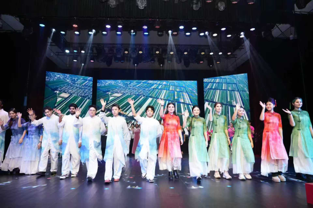 活动由《同心筑梦向未来》暖场启幕。随后的节目精彩纷呈,形式多样。重庆市侨青会的音乐短剧《将世界造成花园一样》深情再现卢作孚先生建设家乡的传奇故事。重庆师范大学将《春夜喜雨》《早发白帝城》《重庆》等古诗词歌曲串烧创新演绎巴蜀诗韵,钢琴伴舞《彩云追月》动人心弦的旋律展现宁静写意的月夜图。四川外国语大学的舞台剧《侨海一脉连四海 同心共筑中国梦》,勾勒百年侨史,赞颂赤子情怀。重庆第二师范学院的舞台剧《世界的汤显祖·世界的塞万提斯》,以东西方戏剧大师穿越时空对话,诠释“美美与共、天下大同”的文明互鉴理念。重庆交通大学的微话剧《光影与诗行》,则通过外国青年因诗词结缘中国的故事,展现文化共鸣。最后,由西南大学来自中国、越南、哈萨克斯坦、俄罗斯、尼泊尔、印度尼西亚、津巴布韦等17国学子联袂献演的歌舞《太阳出来喜洋洋》《唱脸谱》将气氛推向高潮,充分展现了中华文化的强大感染力与勃勃生机。演出在全体演员合唱《相亲相爱》的温馨氛围中圆满落幕。
