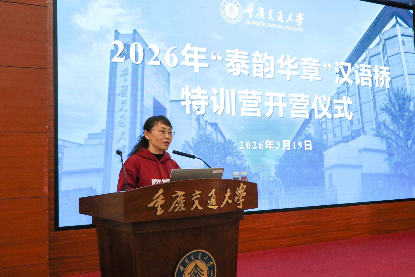 最后,旅游与传媒学院汉语文化系教师唐娟对本次活动安排做了说明。此次特训营为期10天,紧扣“汉语桥”比赛目标,汇聚了优质师资,不仅开设了中国概况、演讲技巧、中国民歌、汉字文化等专项培训,将让同学们感受华夏文明的博大精深,还将带领同学们深度领略“山水之城”重庆的独特风韵,在洪崖洞、科技馆等地标建筑中,读懂这座城市的开放与包容。