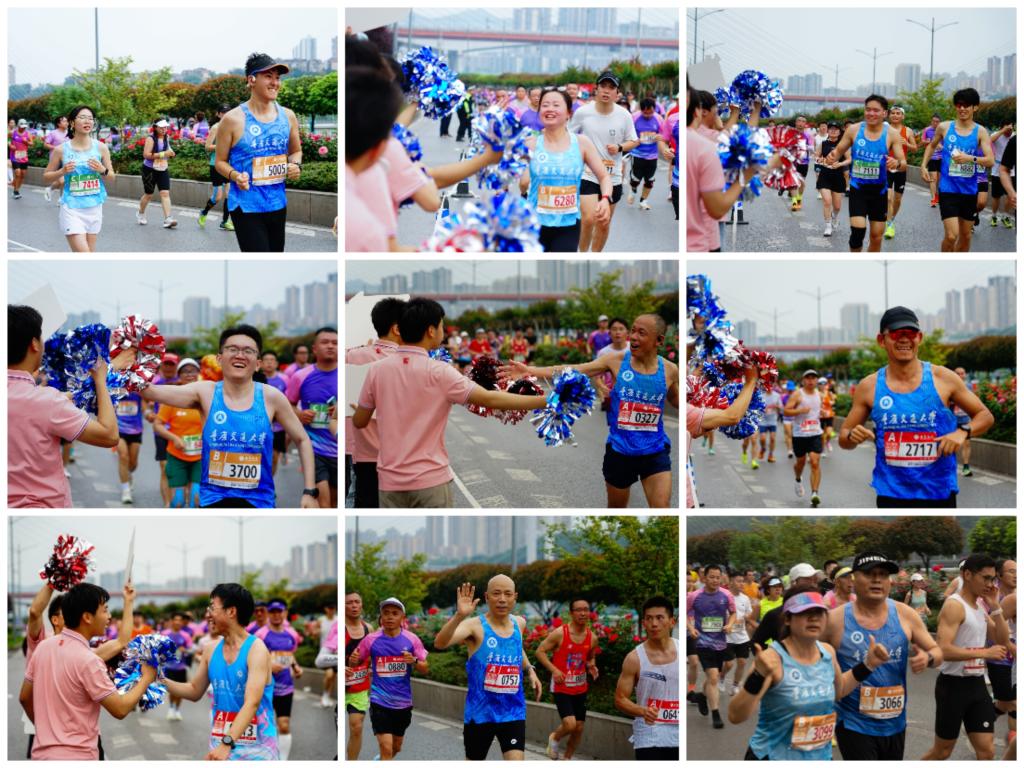 赛道串联起滨江盛景与山城文脉,为更好凝聚校友力量、共贺母校75周年华诞,重庆交通大学校友会精心统筹组织:提前对接赛事,解读竞赛规则,统一定制专属服装,组建啦啦队助威鼓励,以贴心服务搭建起校友联络的坚实桥梁。大家因奔跑再度相聚,因情谊携手同行,同窗情、校友情、母校情在奔跑中层层交融,生动诠释了“重逢、重情、重燃”的校友力量。