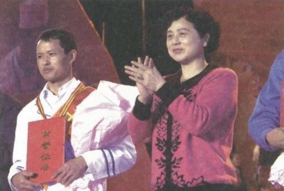 重庆市副市长童小平(右)为“馒头师傅”杨明旭颁奖