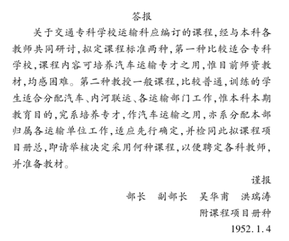 1952年1月,吴华甫提交的那份办学答报,以“靶向培养川藏公路急需人才”为核心,字里行间皆是对教学实效的严苛考量与对一线需求的精准对接。答报开篇即明确“教学与施工无缝衔接”的核心原则,直指当时“人才缺口大、技能要求急”的现实矛盾。在课程体系设计部分,办学答报清晰划分“基础理论、专业核心、实操技能”三大模块。这份办学答报的每一项规划都紧扣川藏公路建设的实际需求,成为学校精准育人的“导航图”。