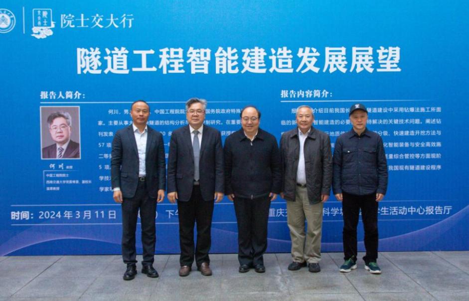 “无论走多远,母校永远是我的根”,何川从未忘记滋养他的这片土壤。他常回到重庆交大,或为学弟学妹作学术报告,或指导母校科研团队。2024年3月的返校,不仅带来了“隧道工程智能建造发展展望”的精彩分享,还特意去了交通土建工程材料国家地方联合工程研究中心,戴上安全帽走进实验室,指尖抚过崭新的试验设备,转头对大家说:“这些平台要好好用,能让年轻人少走很多弯路”,表示将全力以赴支持母校建设。在与学生交流时,他指着自己当年的毕业照说:“重庆交大教会我的,不只是公式定理,更是‘顽强拼搏,甘当路石’的精气神。你们现在在实验室啃的每一张图纸,将来都可能变成架在山河间的桥、通在地下的路。”