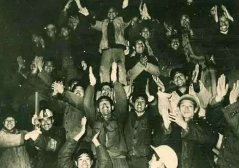 1981年葛洲坝顺利截流,现场的建设者们欢呼雀跃