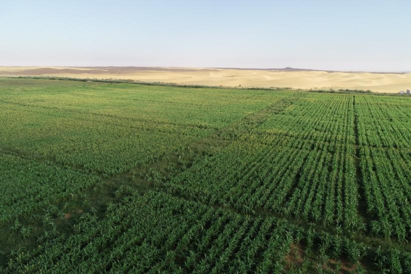 如今,昔日的沙漠已经变成了种植粮食作物、经济作物、饲料作物、乔灌木、中草药等的绿洲。经“土壤化”改造的沙漠保水、保肥、透气,非常适合作物生长,还形成了极为丰富的动植物生态系统。