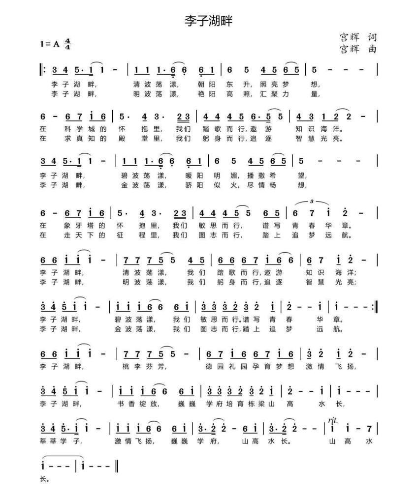 《李子湖畔》词曲