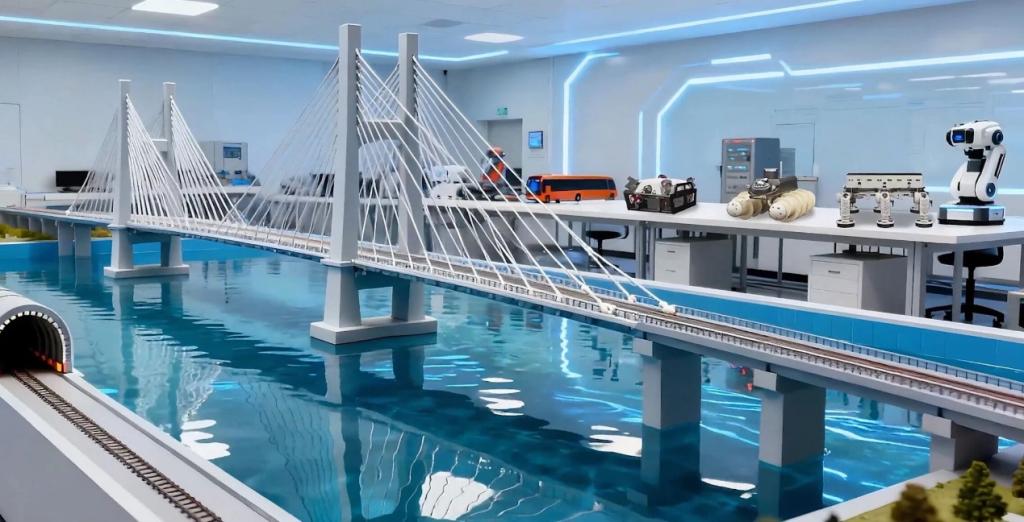 针对桥梁检测、水下作业、钢索攀爬等交通基础设施智能化运维的核心需求,团队启动了10余台(套)交通机器人的研发工作。为让模型精准适配交通基础设施检测的复杂场景,董绍江带领团队成员多次奔赴黄花园大桥、涪江二桥现场,白天顶着烈日采集数据,不放过每一个细节;夜晚返回实验室,连夜对数据进行深度分析、优化模型算法。当遇到模型识别精度不达标的难题时,董绍江牵头组织跨领域研讨,结合自身在机械设计、智能控制领域的深厚积淀,提出创新性改进思路,带领团队反复迭代测试。经过数月的日夜奋战,复杂扰流情况下的水下巡检机器人、水泥桥面大负载攀爬机器人、塔索喷涂机器人等成果,终于在多所大型桥隧的实测中取得圆满成功,为交通机器人行业标准的制定提供了坚实的技术支撑。