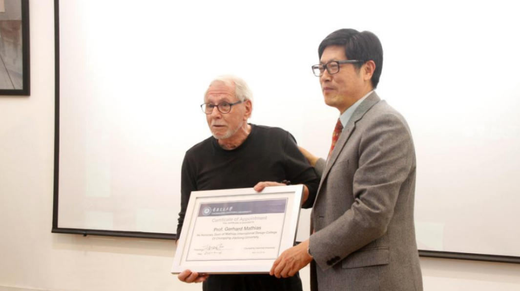 有这样一位老人,远在万里,本可以在海滩或自家花园享受夕阳无限好,然而他的心始终惦记着中国的设计教育事业。盖尔哈特·马蒂亚斯,这位德国卡塞尔大学终身教授、包豪斯现代设计体系传承人,以包豪斯设计教育理念为火种,在重庆交大的沃土上,点燃了一场跨越国界的设计教育革新——他不仅是重庆交通大学艺术设计学科创始人,更是马蒂亚斯国际设计学院的荣誉院长,被誉为“中国设计教育界的白求恩”。2021年,经我校推荐,马蒂亚斯教授荣获了中国政府友谊奖,该奖项是中华人民共和国政府为表彰在中国现代化建设和改革开放事业中做出突出贡献的外国专家而设立的最高奖项。