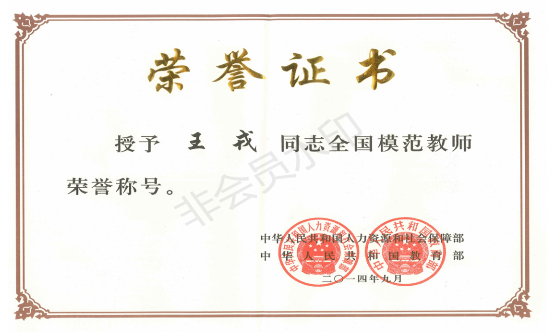 王戎2014年获评“全国模范教师”