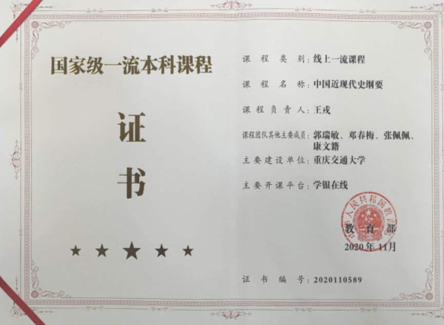 《中国近现代史纲要课程》获批首批国家级一流本科课程