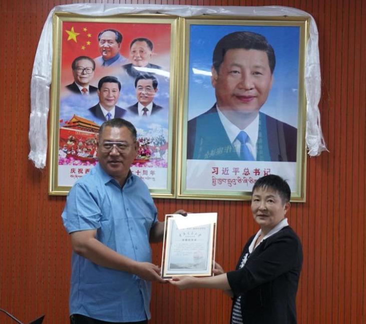 郑旭煦副书记向西藏校友会颁发“传承弘扬‘两路’精神示范团队”荣誉证书