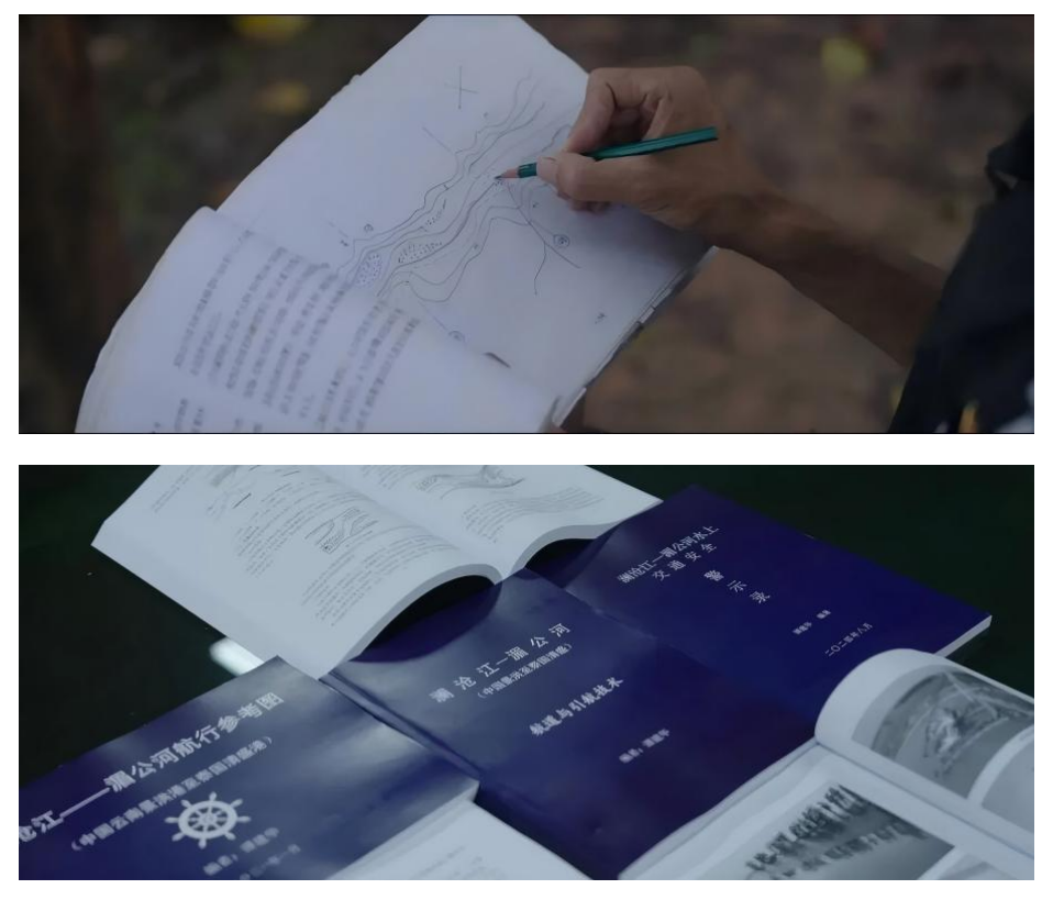 多年来,谭建华的“准”比他的“勇”更让人动容。在湄公河航道几乎无系统资料可查的年代,他用20多年的实战经验,一页一页画、一段一段量,最终绘制出包含300余页插图、40余万字航法说明的《湄公河航道参考图》。谭建华对千余处关键节点如数家珍,哪里有暗礁、哪里会涨水、哪个河段季节变换最凶险,皆了然于心,能准确指出其位置和变化规律。因此,谭建华被誉为“湄公河的活地图”,他驾驶的53101巡逻艇也被四国船队称为“移动的航标”。除了航图,他又主编《湄公河航道与引航》《湄公河水上事故警示录》等著作,第一次系统填补了这条国际公河航海技术资料的空白。有人说:“无论这条河以后怎么变,都绕不开谭建华留下的航道标注和技术参考。”