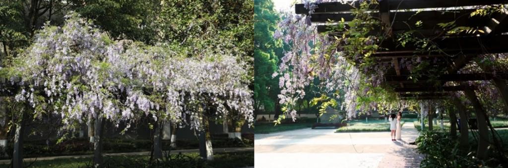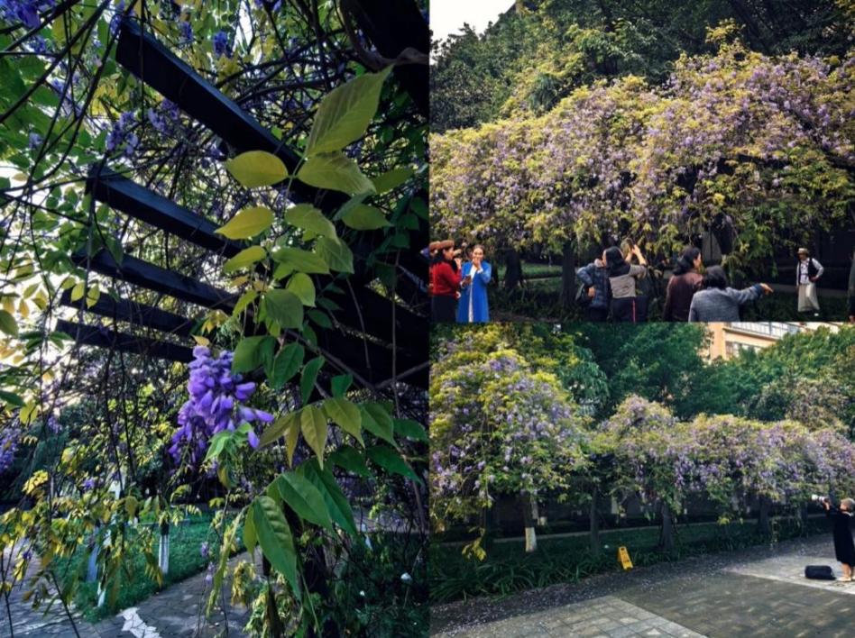 学子们从旁走过,看着眼前温馨美好的景象,心中也多了几分柔软与安然。他们在紫藤花下轻嗅花香、举机拍照;或围坐讨论毕业设计,花香伴着图纸;或捧书坐在花架下,任花香浸润书页,让文字与诗意相融;或三两结伴,漫步花径,笑语轻扬,或捧书坐在花架下,任花香浸润书页,让文字与诗意相融,青春的气息与春日的生机彼此缠绕,成为校园里最动人、最鲜活的风景。