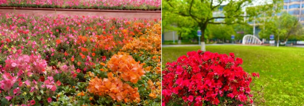 交大的春日,从不只有紫藤的浪漫。教学楼前,玉兰花亭亭绽放,白的莹润如雪,粉的温婉似霞,“绰约新妆玉有辉,素娥千队雪成围”,花瓣厚实而光洁,像玉石雕琢而成,孤傲挺立,为严谨的校园添了一抹清雅高洁的气质,远远望去,如云中仙子,静立不语,自带风骨。花坛之间、围墙之上,三角梅热烈盛放,红的似火,粉的如霞,攀援向上,肆意舒展,热烈奔放,像学子们滚烫的青春,在阳光下尽情绽放,无畏风雨,向阳生长。青草破土,新芽抽枝,香樟吐绿,松柏含青,校园的每一寸土地都涌动着蓬勃生机,目光所及,皆是绿意与繁花,心之所感,全是希望与力量。