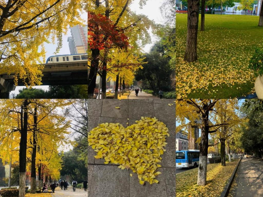 交大的秋,最惊艳、最动人,莫过于满城尽带黄金甲的银杏。校园主干道两旁,银杏树高大挺拔、整齐伫立,如守护书香校园的沉默卫士,静静陪伴一届又一届学子成长。一入秋,满树翠绿便悄然晕染,由浅黄转至深金,最终换上一身璀璨盛装,惊艳整个南岸。“碧云天,黄叶地,秋色连波,波上寒烟翠。”范仲淹笔下悠远清绝的秋日意境,在交大校园里缓缓铺展,触目皆是诗。银杏叶好似一只只轻盈的金蝶,停驻枝头、随风轻颤;阳光穿过层层叶隙,碎金般洒落地面,铺成一条闪闪发光的金色大道。风一吹,金叶簌簌飘落,如一场温柔绵长的金雨,洋洋洒洒、轻盈唯美,轻轻落在肩头、铺在路上、藏进草丛,将整座校园包裹在温暖而梦幻的金黄里。