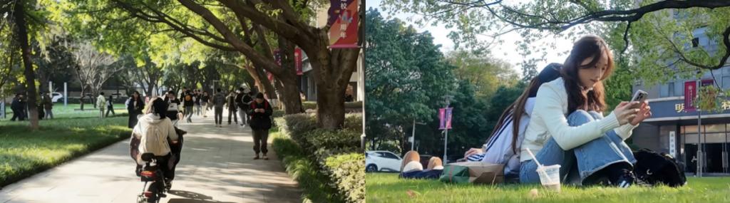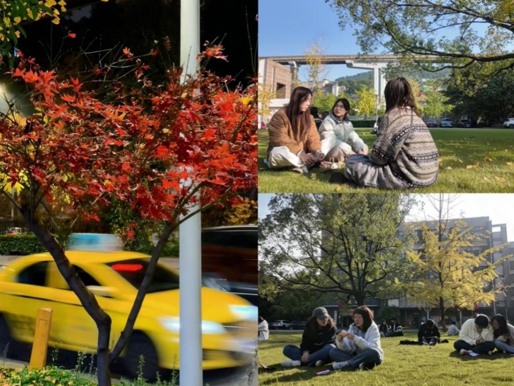 草坪之上,不少同学席地而坐,沐浴着暖洋洋的日光,或静静看书、沉淀思绪,或轻声谈笑、畅谈未来,或闭眼小憩、独享片刻安宁。金黄的银杏叶在身旁轻轻飘落,时光在此刻也放慢了脚步。