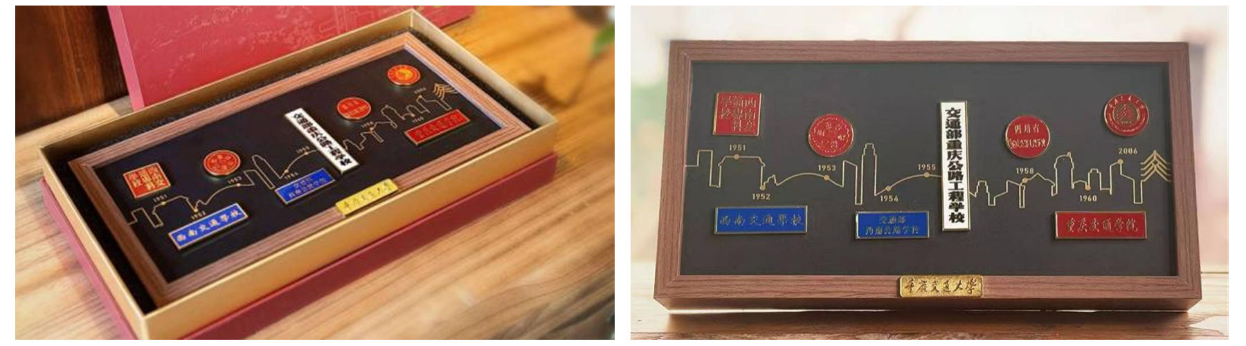 如果说哪一件物品最能代表学校的历史厚度与精神重量,答案几乎毫无争议——“校史徽章礼盒”。设计团队一头扎进浩如烟海的校史档案中,查阅年鉴、走访校友,只为求证那八次更名背后的确切时间与字体细节。从黑白公文到烫金批文,每一次校名的更迭,都不仅仅是一个称呼的改变,更是学校从初创到壮大、从单一到综合的蜕变缩影。这套礼盒以时间轴的形式,将八枚徽章串联成一部微型史诗。轻轻拿起一枚,仿佛能听见当年建设“两路”的号角,能看见老一辈交大人跨越山海、披荆斩棘的身影。它经过无数次与校史馆、宣传部的联合考证,最终才得以面世——只有经得起最严苛史料检验的载体,才有资格成为交大人寄托身份的“信物”。